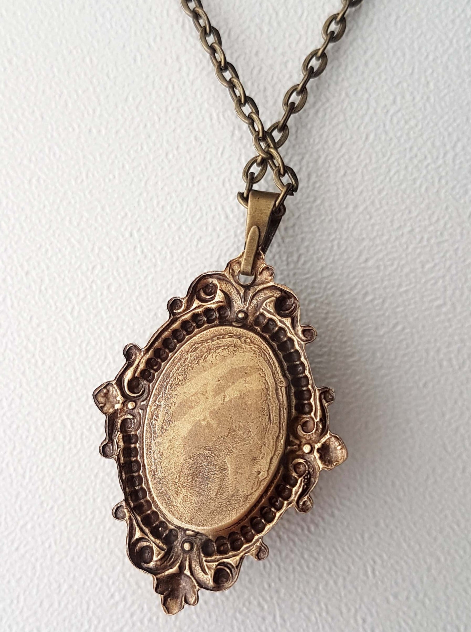 Inspired by Victorian Memento mori jewellery, this dainty macabre necklace features a shimmery human skull set in an ornate Gothic frame pendant.