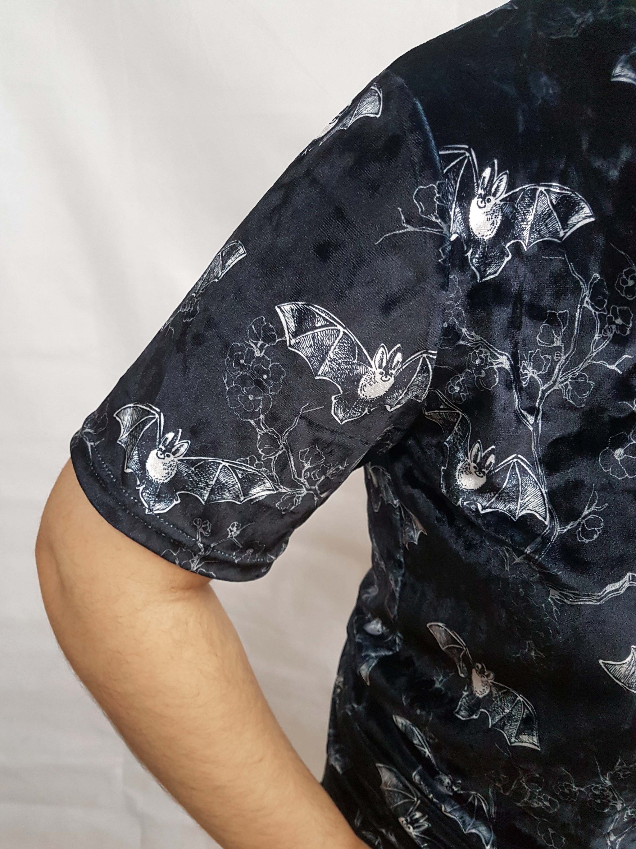 VELVET T-SHIRT (Midnight Bats & Blossoms print)