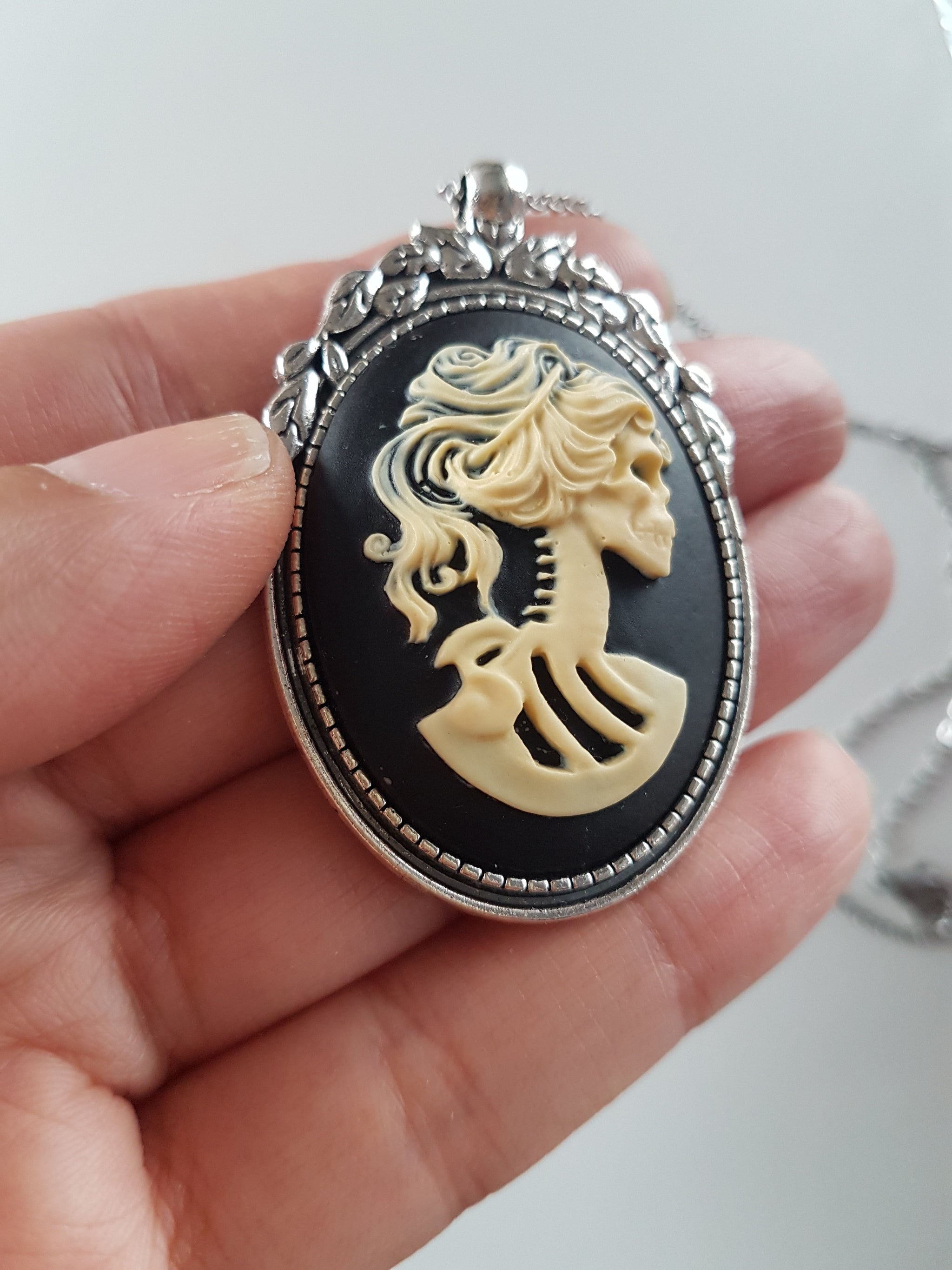 LADY SKULL SKELETON CAMEO NECKLACE