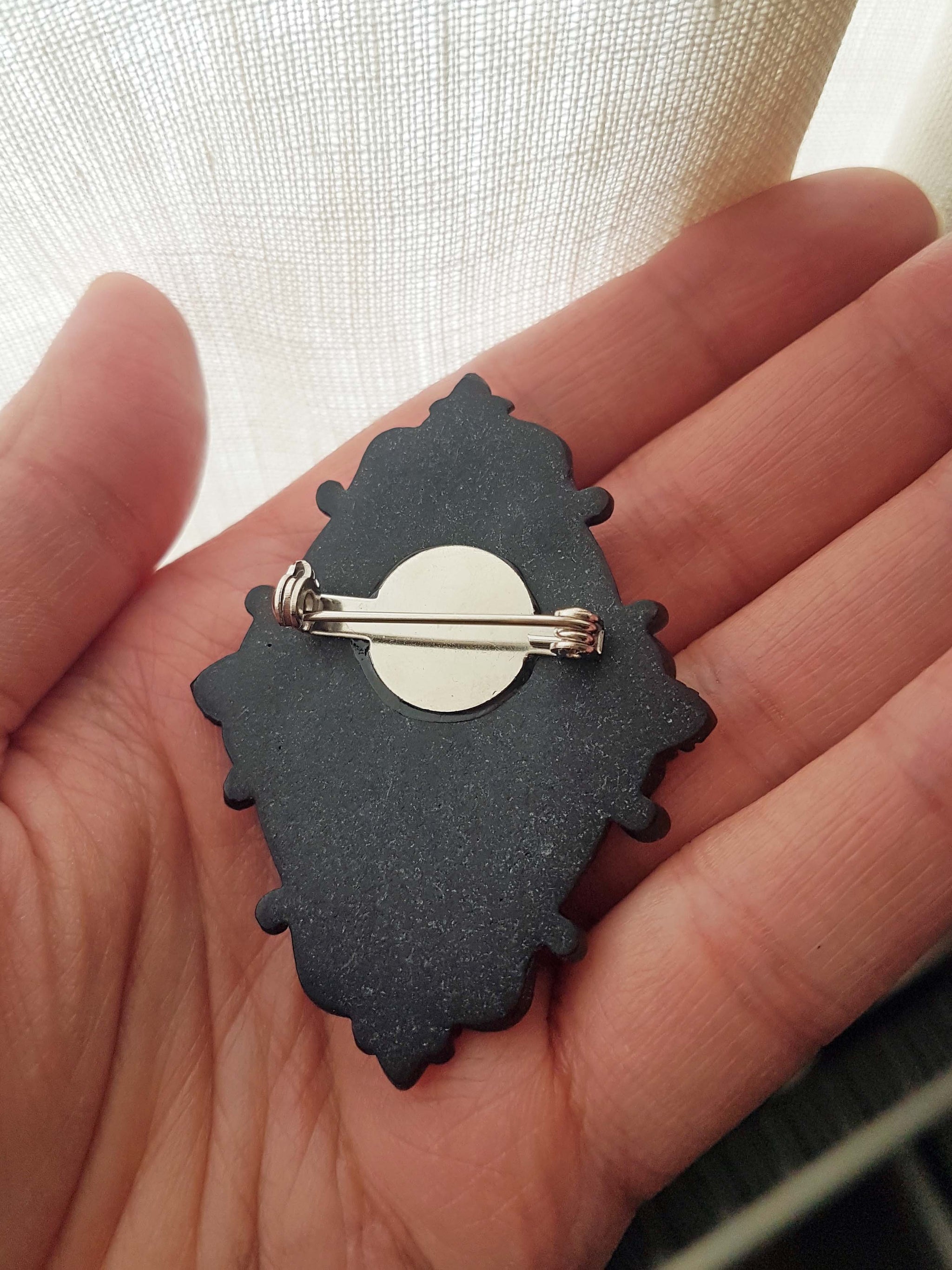 Inspired by Memento Mori, this showstopper piece features a highly detailed skull, set in an ornate Gothic setting. Very spooky and eerie, this is a unisex piece that will look great on your jacket's lapel or as a finishing touch to your dress.