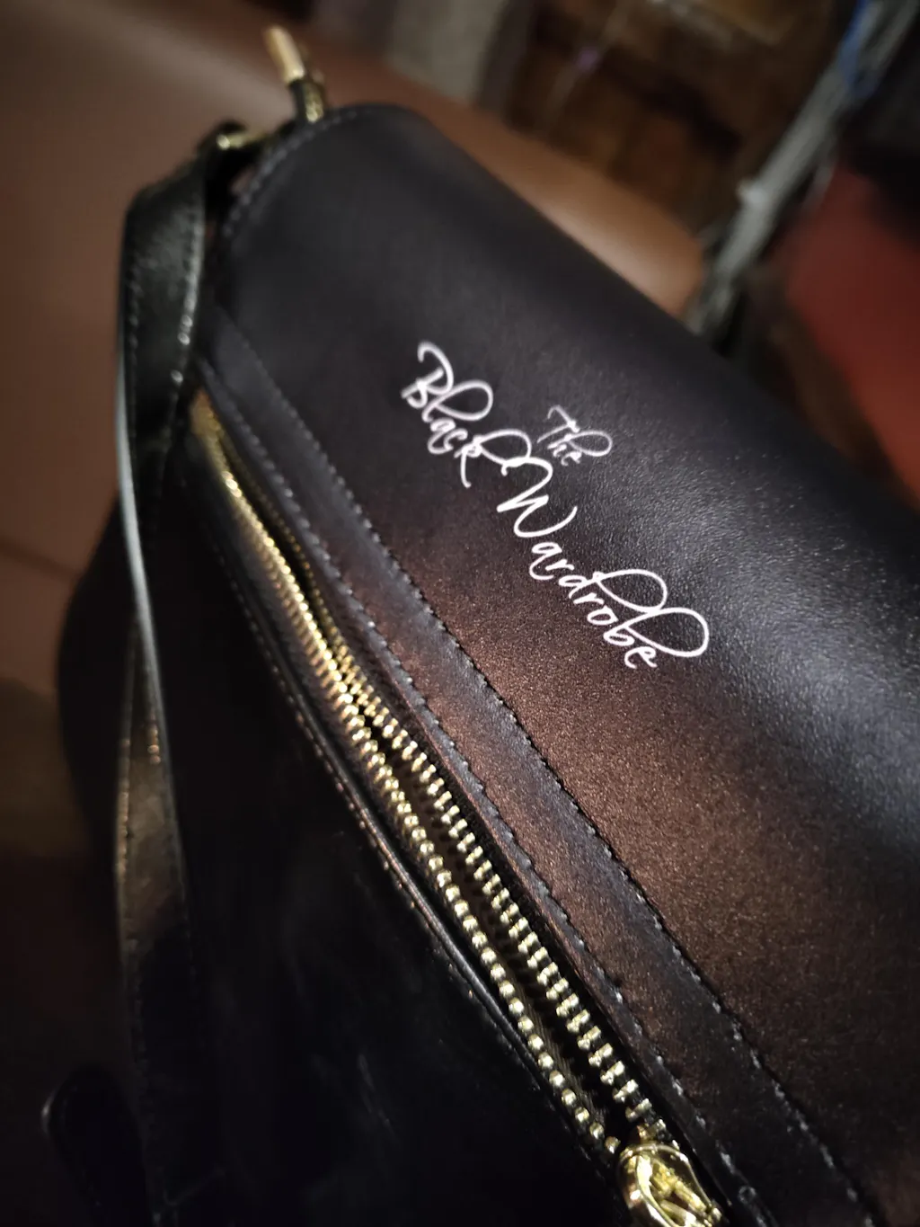 - Gold metal hardware.