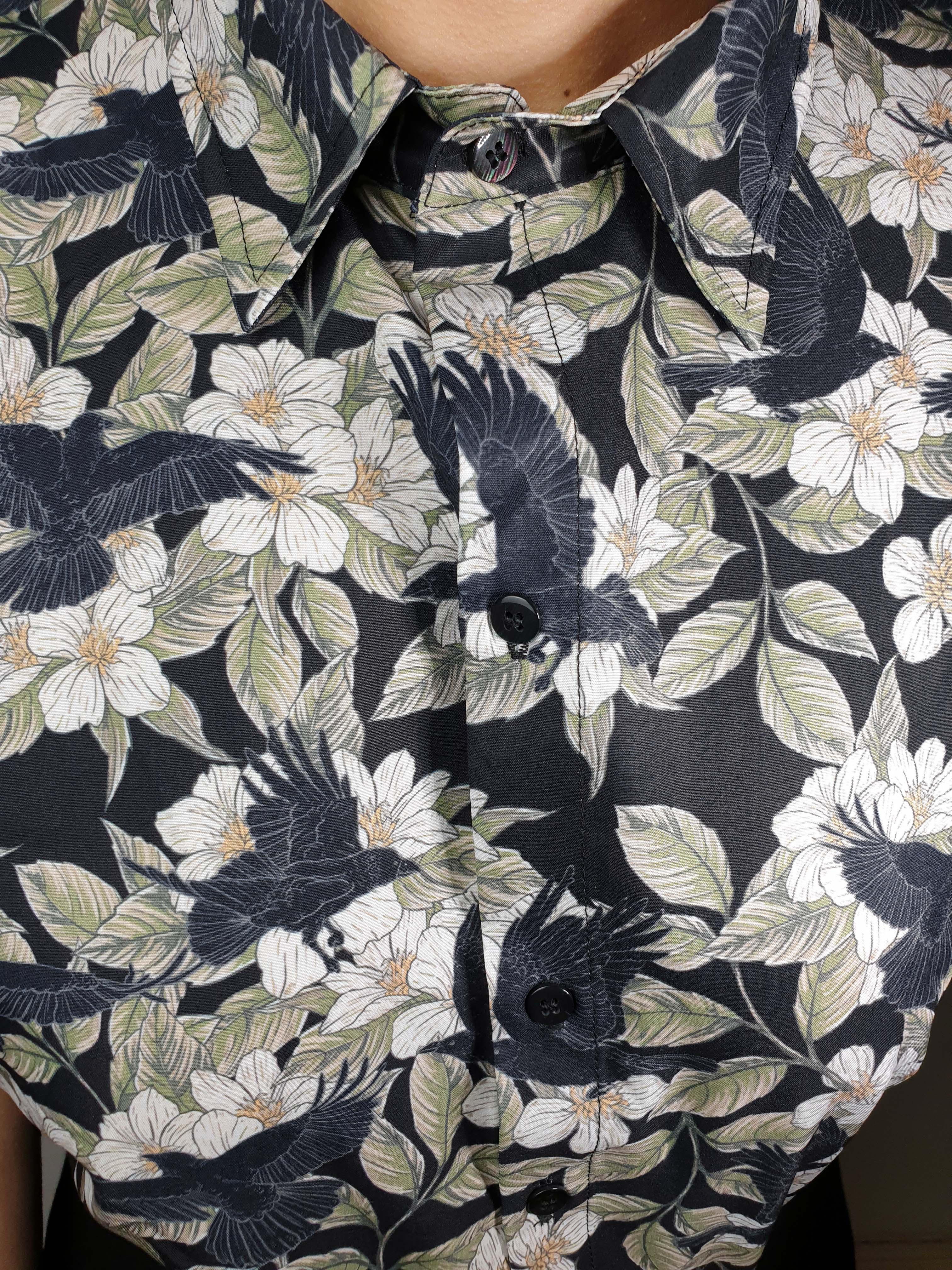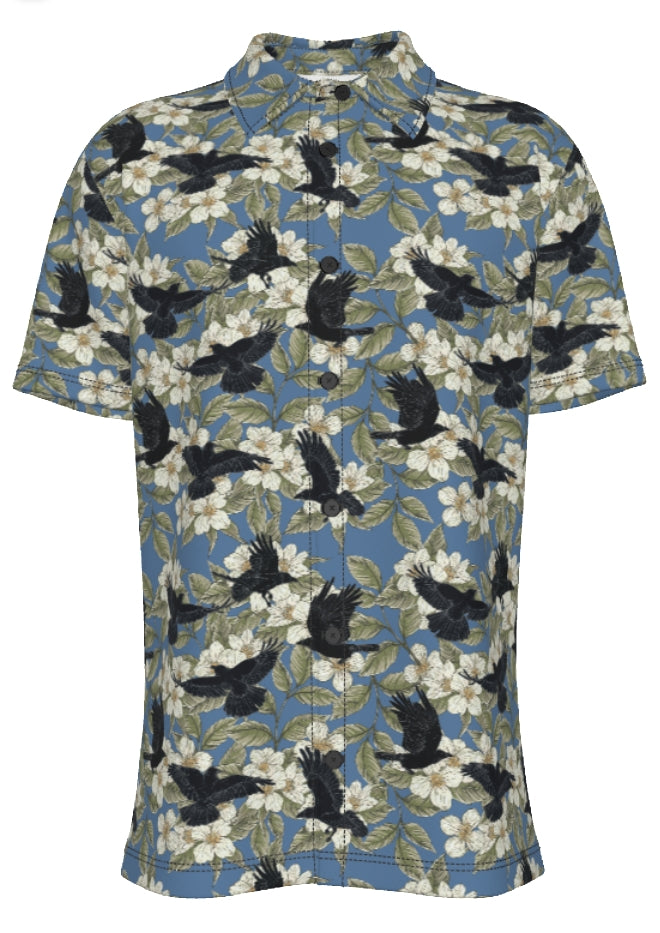 SHORT-SLEEVE COLLARED SHIRT (Spring Flying Ravens print)