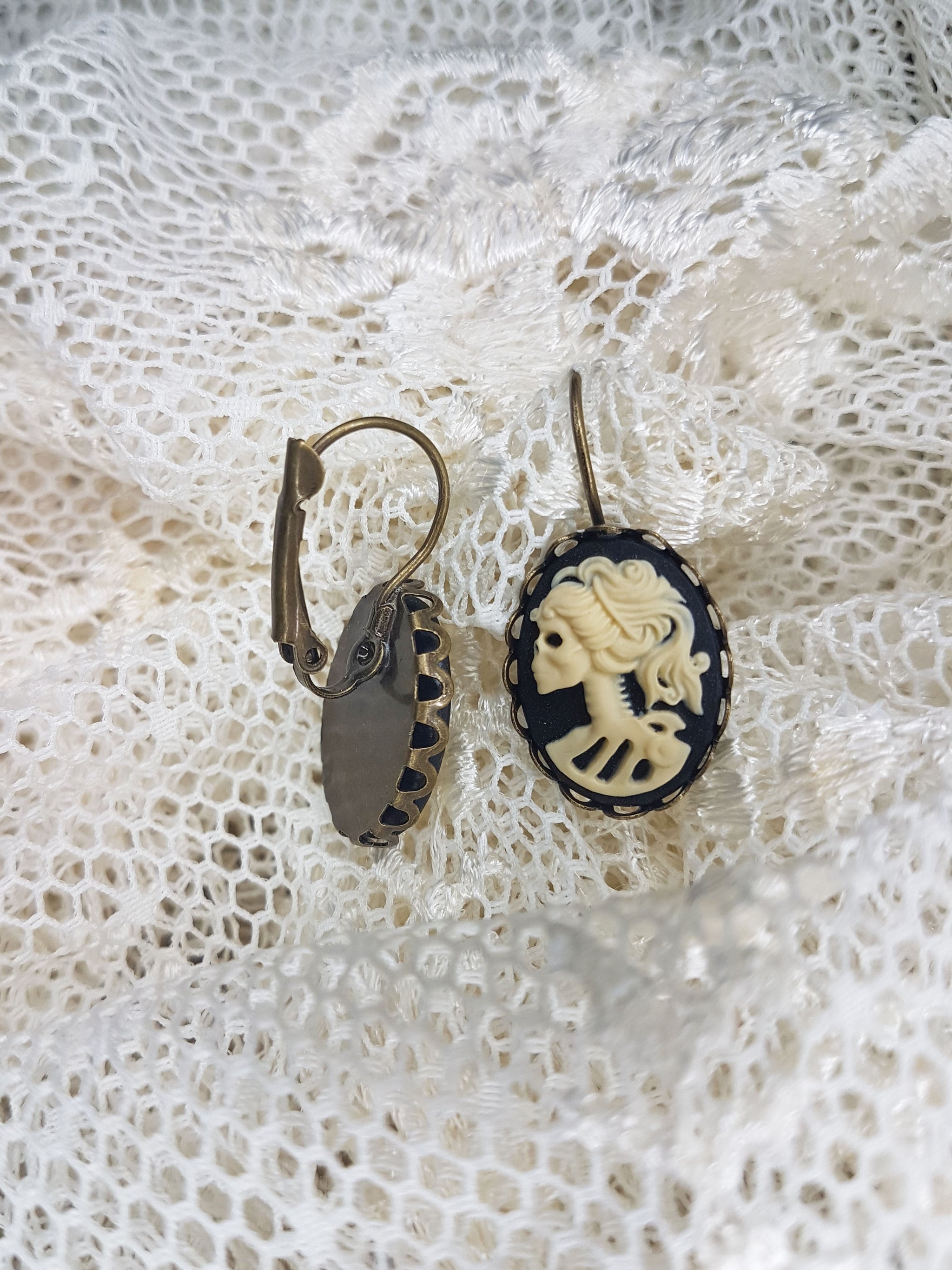 Featuring black cameos with a beautiful female skull skeleton figure, these earrings will add a soft touch of elegant darkness to your outfit and they are lightweight enough to be worn for long periods of time.