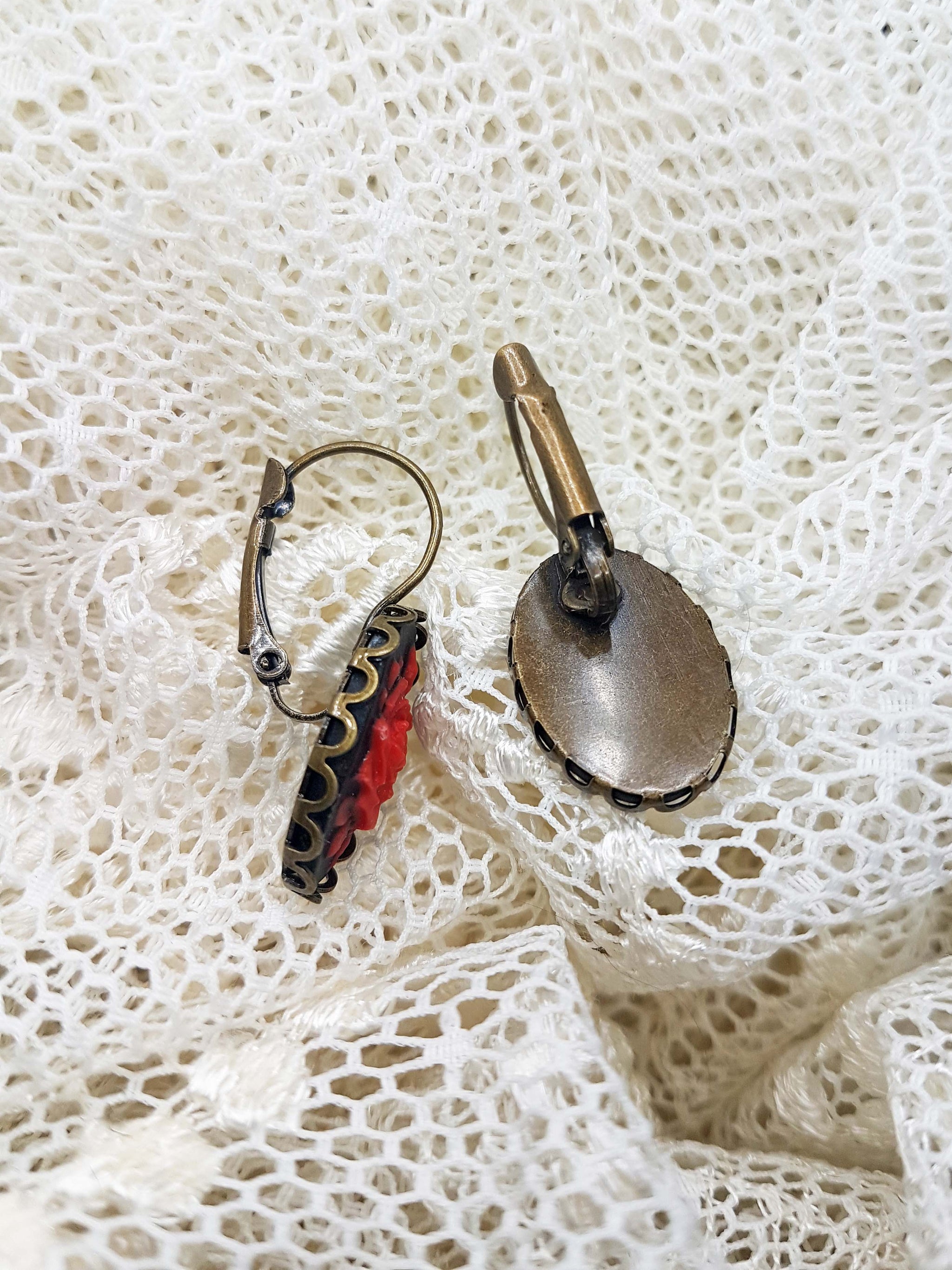 These elegant rose cameo earrings exude Gothic glamour in a very understated way. Featuring black cameos with beautifully carved red roses, they are lightweight enough to be worn for long periods of time.