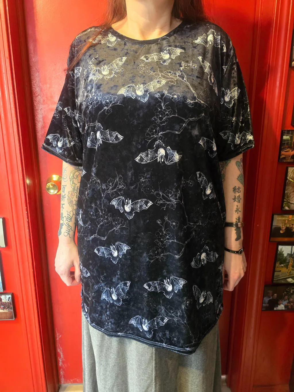 VELVET T-SHIRT (Midnight Bats & Blossoms print)